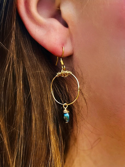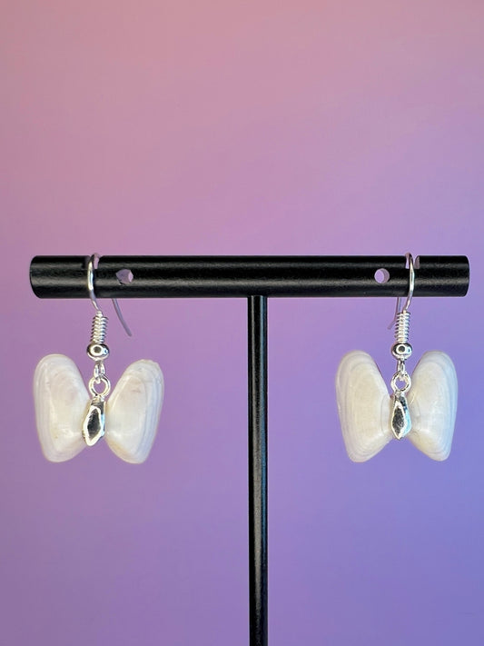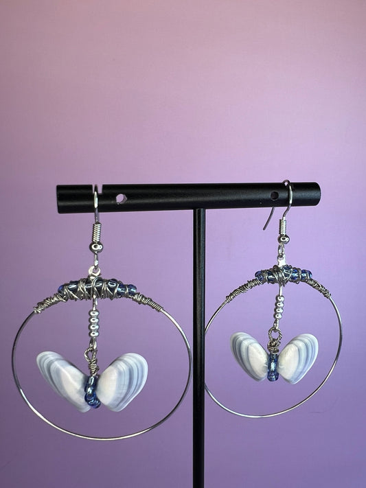 Coquina Shell Butterfly Hoop Dangle Earrings