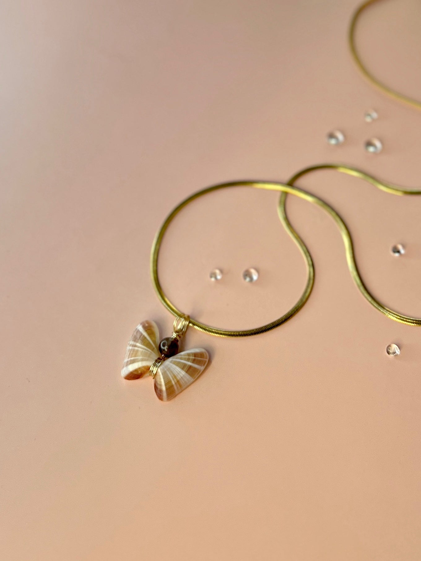 The Coquina Butterfly Necklace is a delicate piece that captures the beauty of nature in its purest form. Made from naturally paired Coquina shells, this butterfly-shaped pendant symbolizes transformation and grace. At its center, a softly polished bead enhances the design, creating a perfect harmony between the sea’s treasures and elegant craftsmanship. Ideal for those who cherish whimsical, ocean-inspired jewelry, this necklace is a timeless reminder of coastal charm and natural beauty.