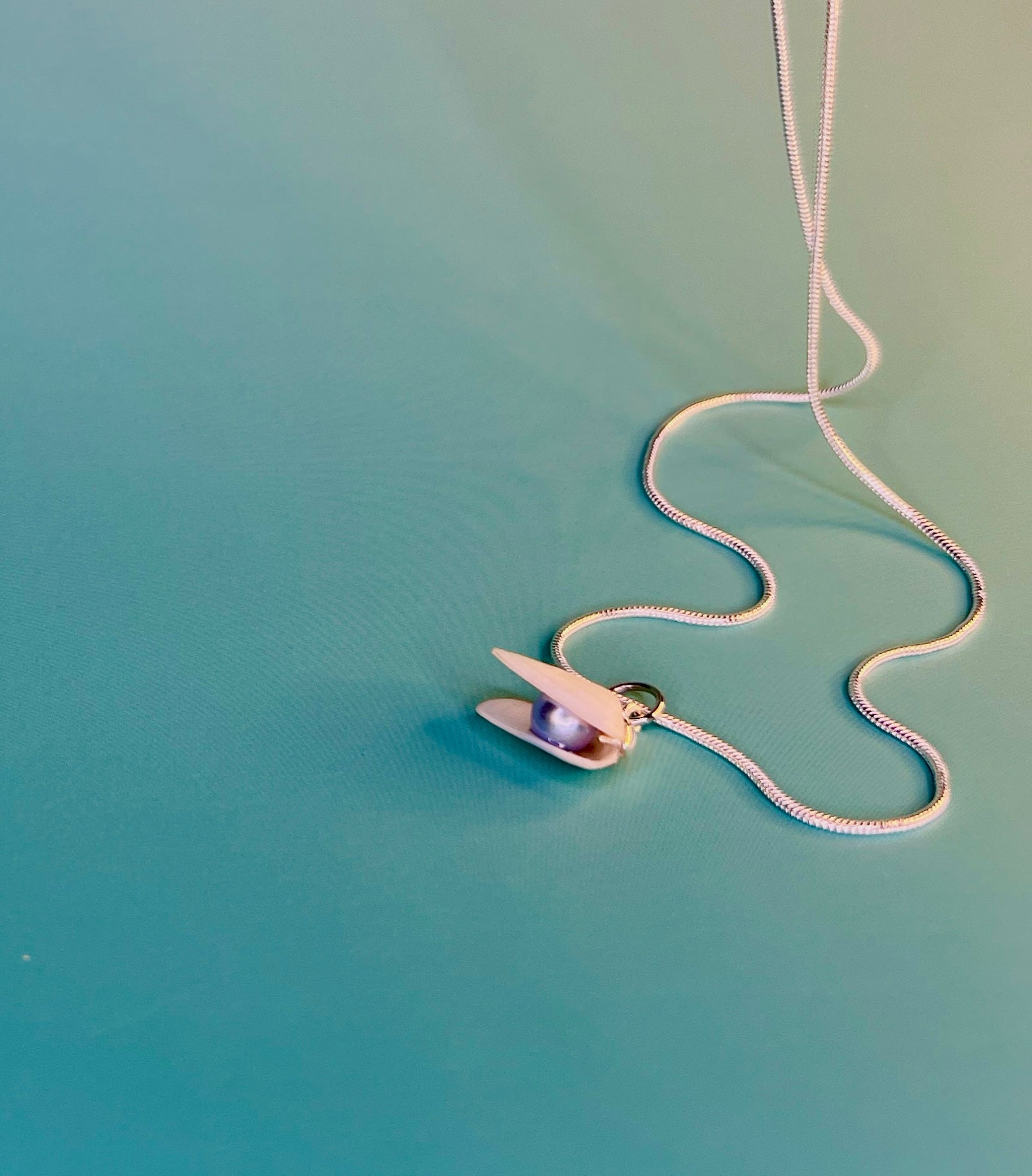 Introducing the Coquina Pearl Charm Necklace, a delicate treasure of the shore with a secret tucked inside. This enchanting piece showcases a naturally smooth white coquina shell perfectly cradling a hidden soft blue pearl at its heart. Suspended from a fine silver chain, the necklace exudes understated elegance and whispers of ocean mysteries. With every glance, this necklace reveals the beauty of nature’s hidden gems, reminding the wearer that even the smallest details can hold the most precious surprises. Perfect for those who appreciate subtle charm with a touch of whimsy.
