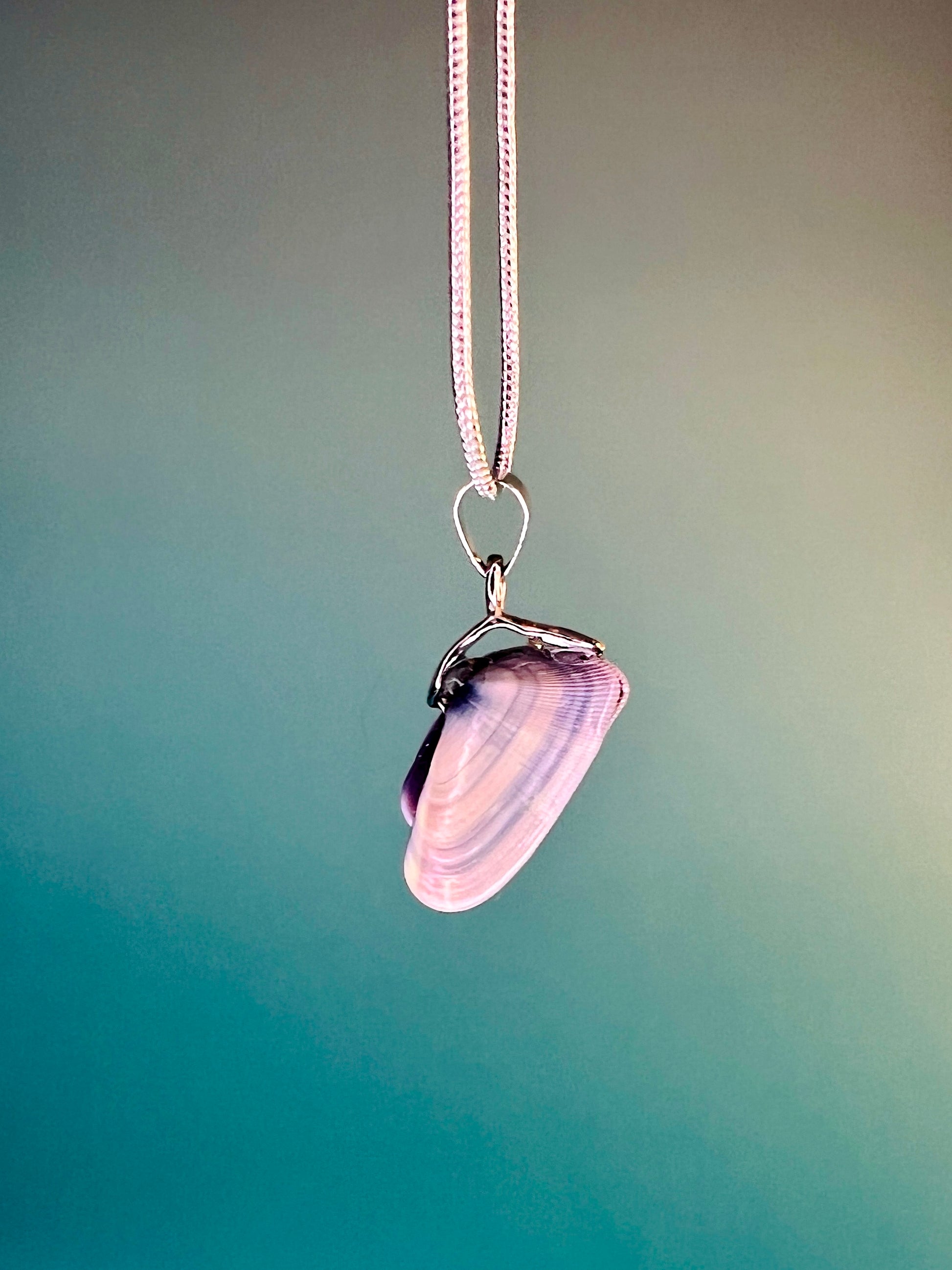 Introducing the Coquina Pearl Charm Necklace, a delicate treasure of the shore with a secret tucked inside. This enchanting piece showcases a naturally soft lavender coquina shell, perfectly cradling a hidden blue pearl at its deep purple heart. Suspended from a fine silver chain, the necklace exudes understated elegance and whispers of ocean mysteries. With every glance, this necklace reveals the beauty of nature’s hidden gems, reminding the wearer that even the smallest details can hold the most precious surprises. Perfect for those who appreciate subtle charm with a touch of whimsy.